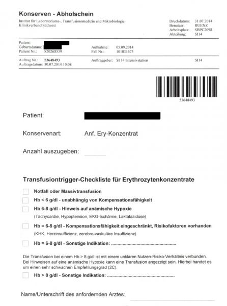 Zusammenfassung: Wie implementiert man restriktive Transfusionstrigger? Holten und Coautoren stellen eine ebenso einfache wie kostengünstige Methode vor: Sie teilten eine Anforderungs-Checkliste aus, machten die Ausgabe der Blutprodukte von den vollständigen Angaben darauf abhängig und siehe da, die Transfusionshäufigkeit sank ebenso wie der durchschnittliche Hämoglobinspiegel, die Krankenhausverweildauer ...